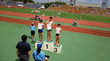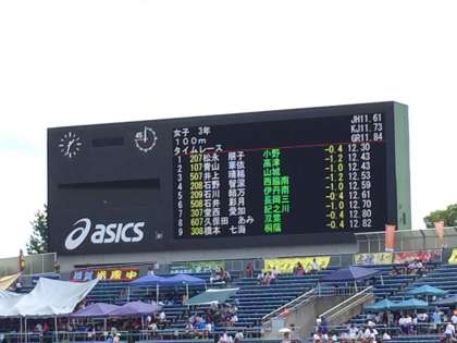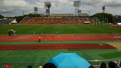 陸上競技は西京極総合運動公園陸上競技場で行われました。こちらも台風の影響で予選なしのタイムレース一発決勝です。女子100mは12秒43とタイムは府大会より少し遅いですが、全体の2位になりました。よく頑張りました。次は全国大会です。自己ベストが出るよう頑張りましょう。
