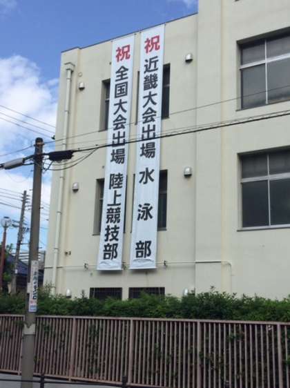 全国大会・近畿大会出場を祝う懸垂幕が完成しました。今後もすべての高津中学校の生徒の活躍を期待します。