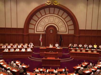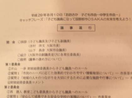 午後2時、中学生市会が開会しました。吉村市長をはじめ、山下市会議長、市役所関係各局の局部長級の幹部が着席しました。吉村市長挨拶により開会です。