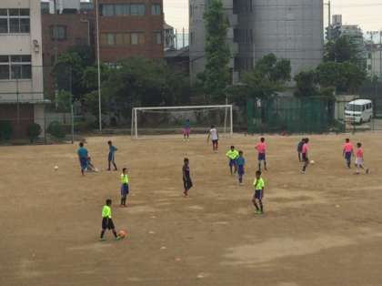 8月15日、学校での部活動、午前はサッカー部だけです。雨が降りそうで降らない、そんな天候です。