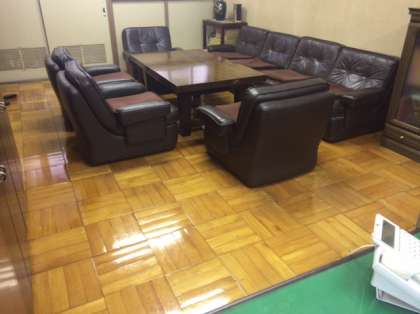 昨日、今日と出勤する職員が少ないので管理作業員さんが職員室・事務室・校長室のワックスがけをしてくれました。床が光っていますね。