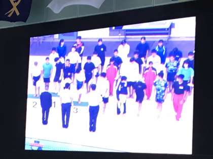 3日間の大会も終了しました。2年男子400mリレーの大会新記録をはじめ、大変多くの入賞者を出しました。総合でも男子3位、女子4位と大健闘です。よく頑張りました。