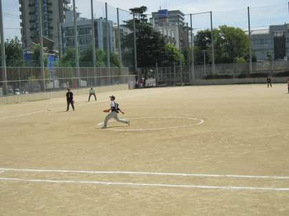 本日、中学生親善ソフトボール大会が、五条グランドで行われました。本校からも3年生が出場しました。みんな、暑い中頑張っていました。