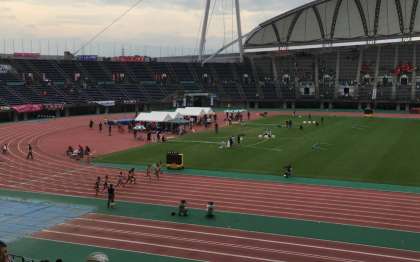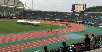 8月21日、大会2日目です。青山さんは今日女子100m予選に出場しました。予選11組目に出場し、12秒49のタイムで1位になり、明日の準決勝に進出です。よく頑張りました。決勝に残ることを期待しています。
