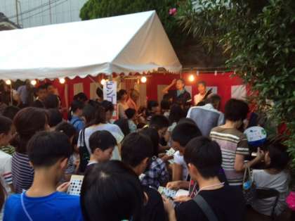 本日、味原東子供会夜店大会がありました。たくさんの子ども達が集まって楽しそうにビンゴをしたり、イカ焼きを食べたりしていました。