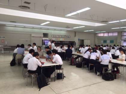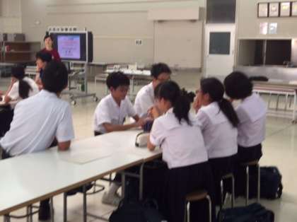 特別活動の部の研究発表会は生徒会交流会です。8ブロック11校の生徒会役員が難波中学校に集まって交流会を行いました。