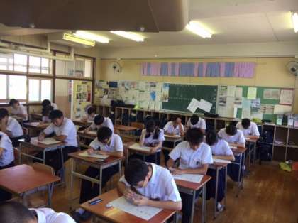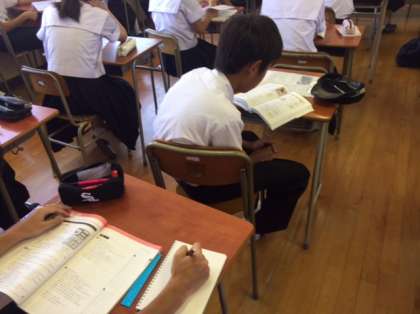 9月1日、3年生は第2回実力テストを行っています。開始直前までの勉強の様子やテストを受ける真剣な様子です。進路獲得に向け、頑張りましょう。