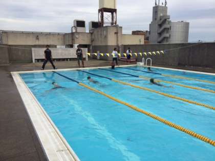 1年体育の授業の様子です。25mのタイムを計っています。水泳の授業もそろそろ終わりに近いですね。