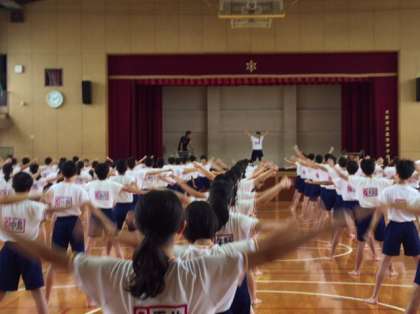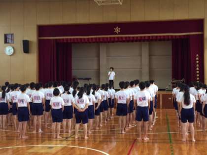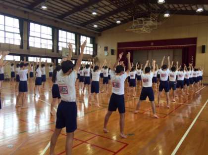 5・6時間目は、3年生の学年練習です。校歌と生徒会歌の練習の後、ラジオ体操の練習を行いました。3年生は舞台に代表生徒が出て、体操を行いました。さすが3年生ですね。