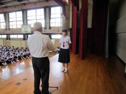 本日は火曜日ですが、週の初めですので全校集会を行いました。