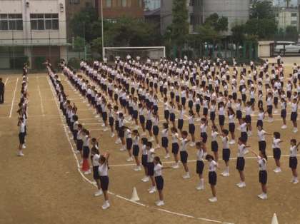 入場行進から始まり、開会式、ラジオ体操と本番同様の流れで行いました。各競技の召集、入退場の練習もしました。