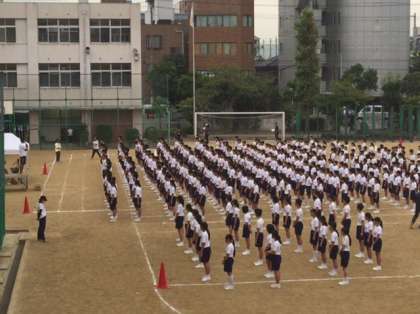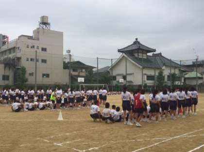 学年種目の入退場や閉会式、最後に校歌・生徒会歌の練習を行いました。雨が降ってきたので少し早めに終了しました。