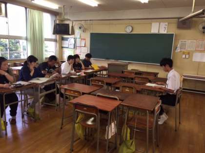 8人の配役に17人がエントリーしました。3年の先生が審査員です。セリフだけでしたが、皆さん上手ですね〜。誰が選ばれるのでしょうか?