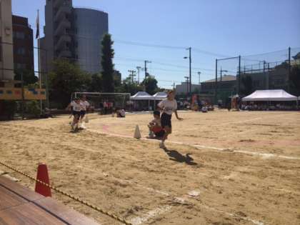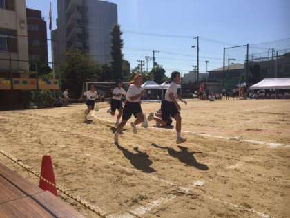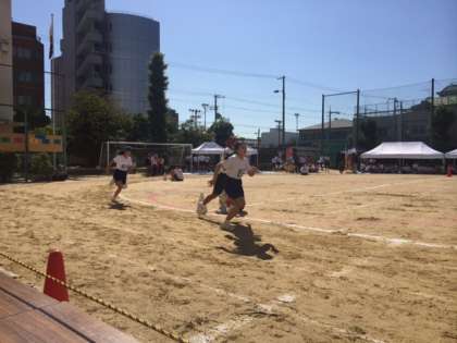 プログラム3番、女子100mです。1年の走る様子です。初めての体育大会での走りはどうかな。