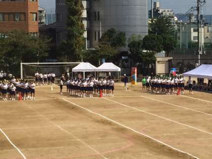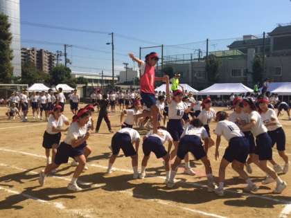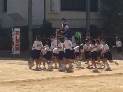 2年学年競技の様子です。馬の背渡りという競技です。バランスが難しいですね〜。