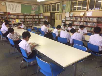 昼休みの図書室の様子です。利用している生徒は2年生が多いようですね。しっかり本を読みましょう。