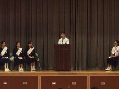 本日6時間目、体育館において後期生徒会役員選挙立会演説会を行いました。選挙管理委員会が司会進行をします。