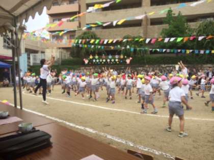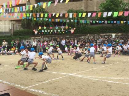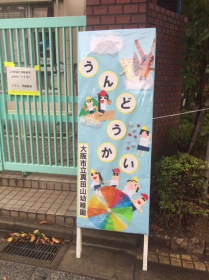 校区の真田山幼稚園・味原幼稚園で運動会が行われました。雨で中断もありましたが、園児の皆さん頑張っていました。写真は真田山幼稚園の様子です。