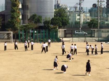 本日の昼休みの様子です。10月10日はハッピーマンデーの制度ができるまでは体育の日でした。1964年東京オリンピック開会式の日を記念して休日に設定されました。雨の確率の低い日としても知られています。今日も秋晴れです。グランドにはたくさんの生徒が出てボールなどで遊んでいます。