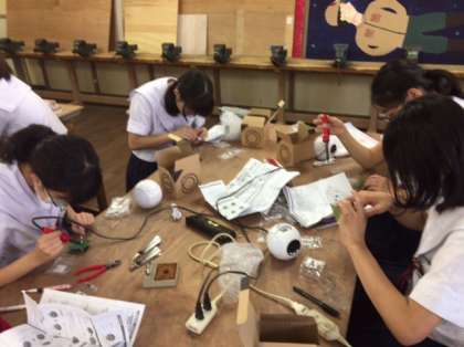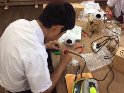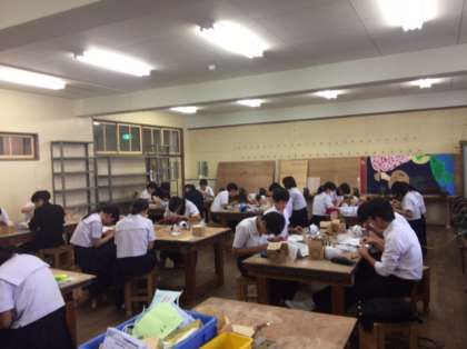 3年技術の授業の様子です。コロックル(ラジオ)を製作しています。はんだごてを使って部品を取り付けています。うまく完成するといいですね。