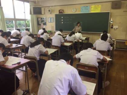 本日、中間テスト1日目です。英語・理科・社会の3教科です。最後まで頑張りましょう。写真は上から1年・2年・3年の様子です。