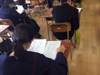 1年社会の授業の様子です。この時間は中間テストの返却です。このクラスの平均点はよかったようですが、頭を抱えている生徒もいました。期末テストは頑張りましょう。