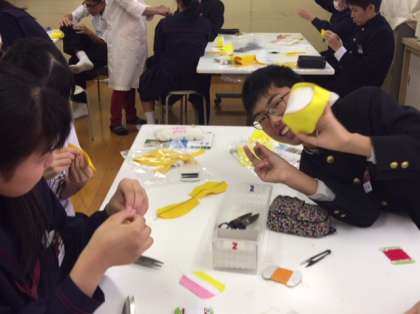 3年家庭科の授業の様子です。ボールキッズ作りもだんだんと進んできました。しかし、なかなか苦戦している人もいます。