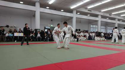 本校は、男子団体戦の一回戦で大浜中学校と対戦しました。互角の展開で大将戦になりましたが、惜しくも2対3で負けました。よく頑張りました。