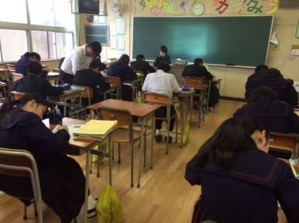 1年英語の授業の様子です。疑問詞を使って会話の練習をしています。次の時間に個別発表があるようです。しっかりスピーチできるようにしましょう。