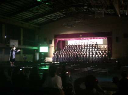指揮者は、本来の生徒が急な病気欠席のため、ピンチヒッターです。しかし、代役とは思えない素晴らしい指揮です。よく頑張りました。すごいですね〜。