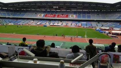 ジュニアオリンピック陸上競技の部が横浜市のニッサンスタジアムで行われています。本日午前、女子100m予選があり、本校の青山さんは12秒33で準決勝に進出しました。
