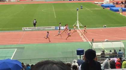 女子100m準決勝の結果が届きました。青山さん12秒42で決勝に進出しました。決勝も頑張ってください。写真の2着でゴールするのが青山さんです。