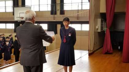 最後に、10月28日に横浜日産スタジアムで行われました、ジュニアオリンピック陸上競技大会で女子100mで6位入賞された伝達表彰がありました。