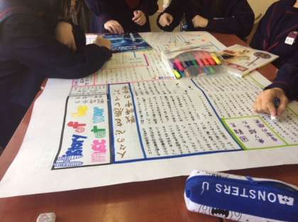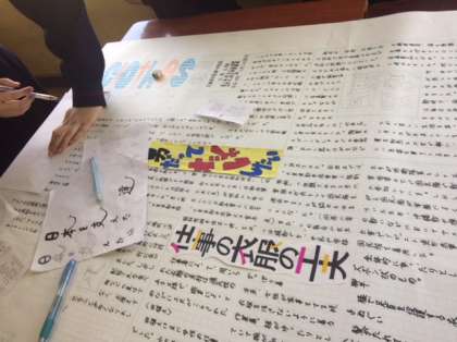 壁新聞づくりもだんだんと形が見えてきました。戦争をテーマに当時の様子がよくわかる新聞に仕上がっていきます。