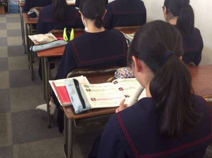 3年音楽の授業の様子です。「帰れソレントへ」など歌の練習をしたあと、アルトリコーダーの練習をしました。