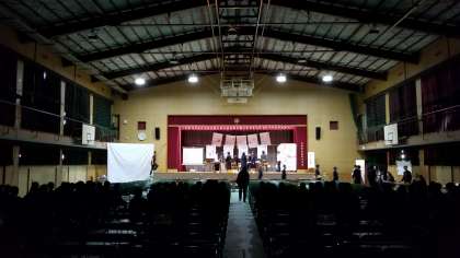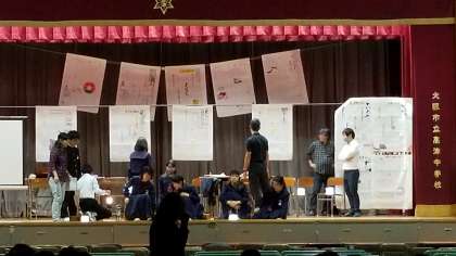 体育館では、3年生が最後のリハーサルをしています。みんなの熱気で館内は大変です。