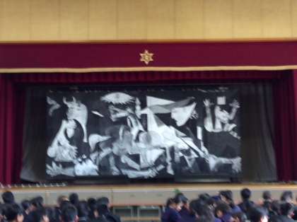 文化祭 24(舞台発表)2年共同制作「ゲルニカ」説明4