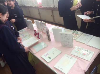 幼稚園での読み聞かせの絵本を作成しました。かわいい絵本がいっぱい並んでいます。