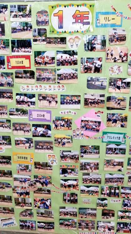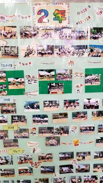 ピロティには、体育大会の写真がレイアウトされ展示されていました。