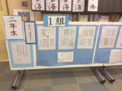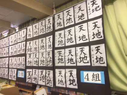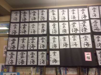 1年書写「天地」、2年創作「枕草子」、3年「雲海」です。みなさん上手ですね〜。