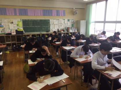 3年生の様子です。3年のこの時期になるとテストが続きますが、どのテストも入試のつもりで取り組みましょう。