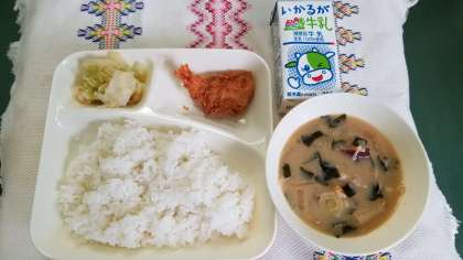 本日の献立は、えびフライ、豚汁、キャベツのかつお梅風味です。