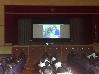 本日6時間目、1年生は障がい児(者)への理解についての学習をしました。障がい児が成長していく過程での社会の様々な課題について理解を深めるため、DVDを見ながら学習を行いました。