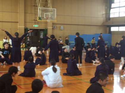 リトミックを通して、頭と身体の表現が異なる動きを行い、その難しさや場面によって緊張感が伴うと表現力が低下することなどを学びました。