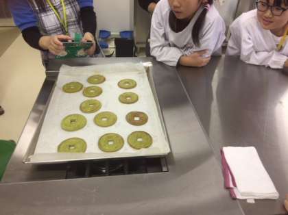 今日のクッキーの形は「六文銭」です。型抜きをしてフォークで模様を入れて、あとはオーブンで焼くだけです。上手に出来たグループありますね〜。交流会は先生が事前に焼いた4種類のクッキーを食べながら行いました。美味しかったですね〜。また、次の取り組みも頑張りましょう。