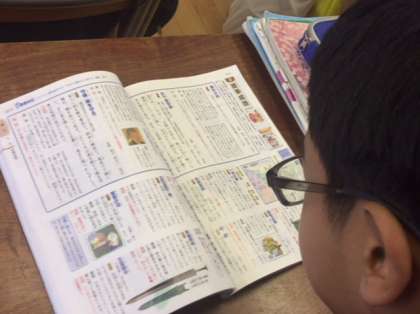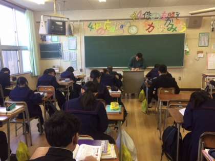 1年国語の授業の様子です。故事成語の小テストを行いました。その後、教科書の「少年の日の思い出」の内容について復習しました。