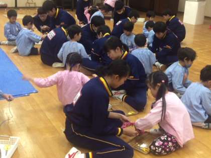 幼稚園の3つのクラスに分かれて作品作りを中心にいろいろな遊びをしました。