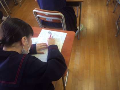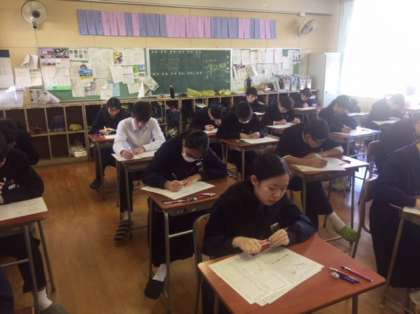 11月16日、3年生は第4回実力テストを受けています。1回目の進路懇談も終え、今回のテストは進路決定に大変大きな意味を持っています。最後まで頑張りましょう。