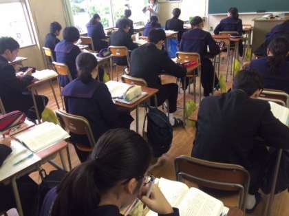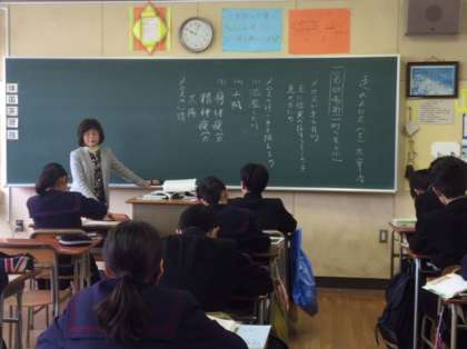 2年国語の授業の様子です。「走れメロス」の第四場面です。いくつもの困難を乗り越えたが、身体も精神も疲れ果て、動けなくなったメロス。その心情を読み取ります。