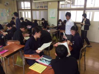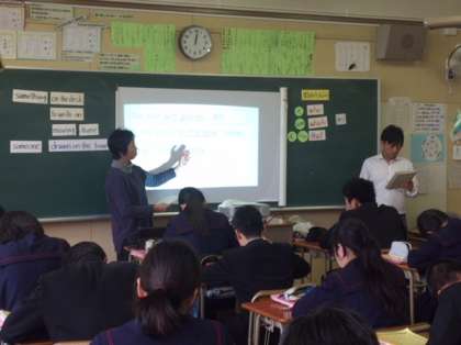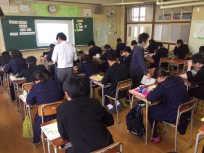 本日4時間目、英語科の相互参観授業を行いました。関係代名詞を用いた英文を理解することを目的にwhichやthatを用いて人物や物などを説明します。ペアで音読できているかの確認やWestlifeのMy Loveをを聞きながら歌詞にある関係代名詞の意味を考えました。先生方は各教科とも相互参観授業をすることで互いの授業力を高めています。